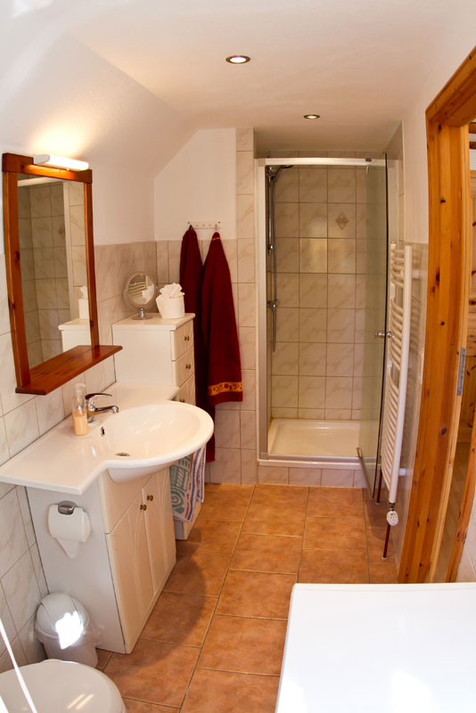 Bad mit Dusche, WC, Waschmaschine